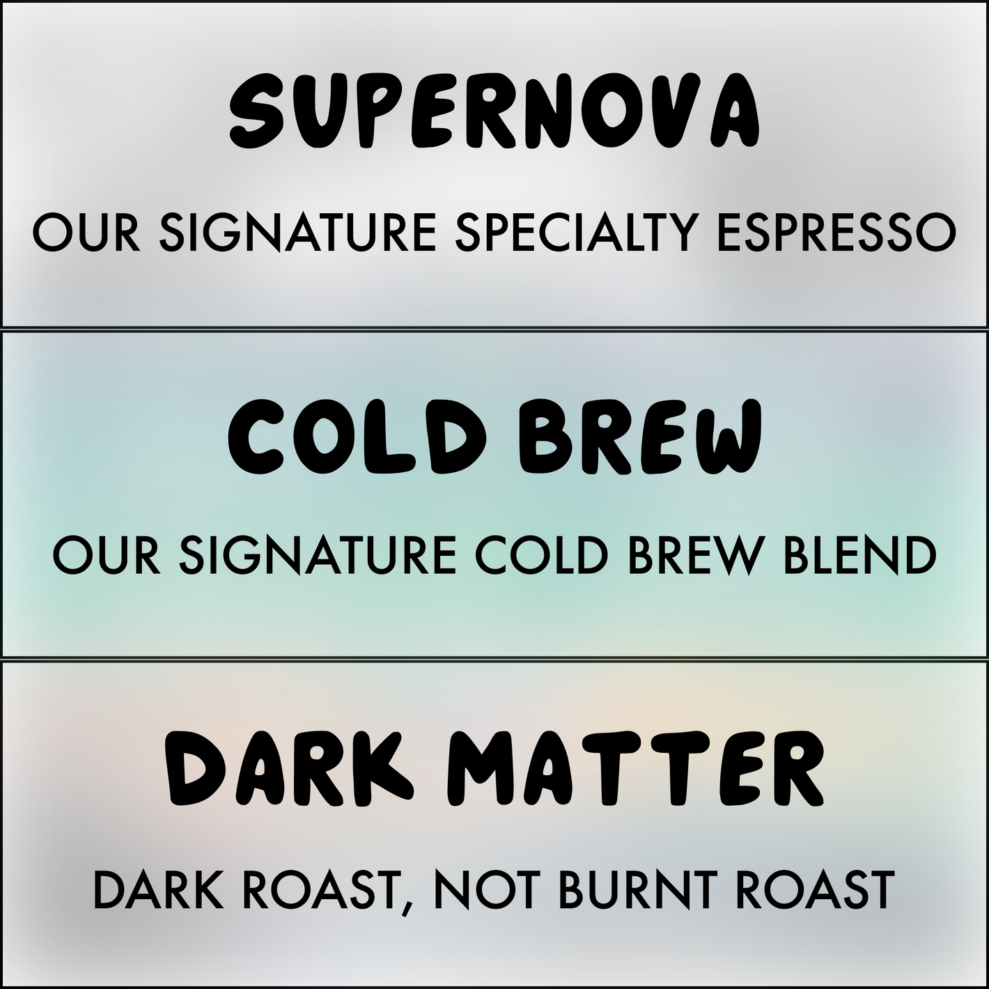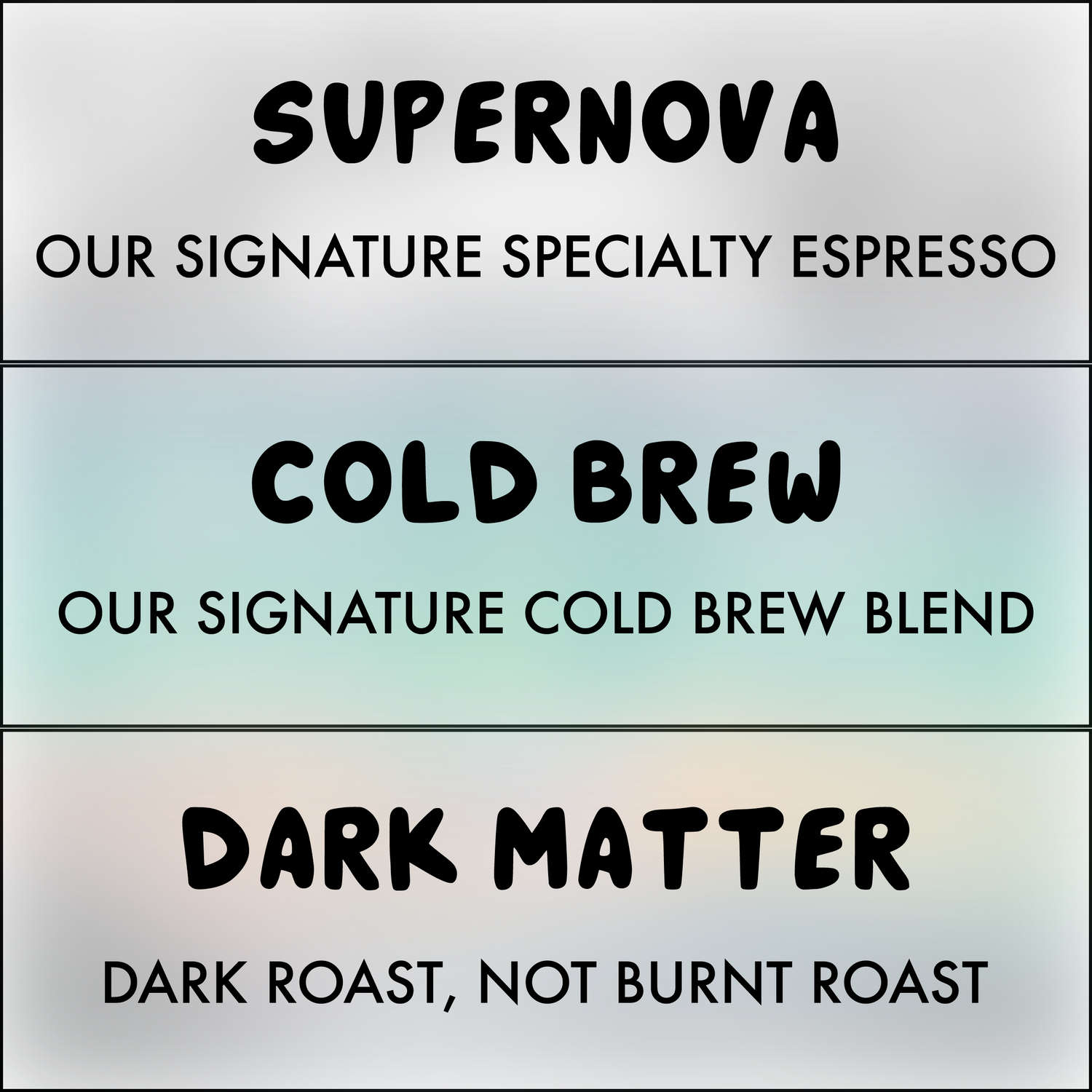 Coffees that rarely change. Think espresso, cold brew, etc.
