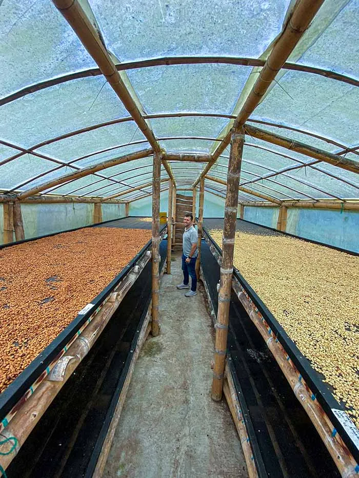 Producer Santiago Patiño is a third generation grower using regenerative methods and fermentation innovation to push Colombian coffee forward. El Ocaso uses regenerative, organic practices—like beneficial microbes for pest control and composting organic waste to enrich the soil.