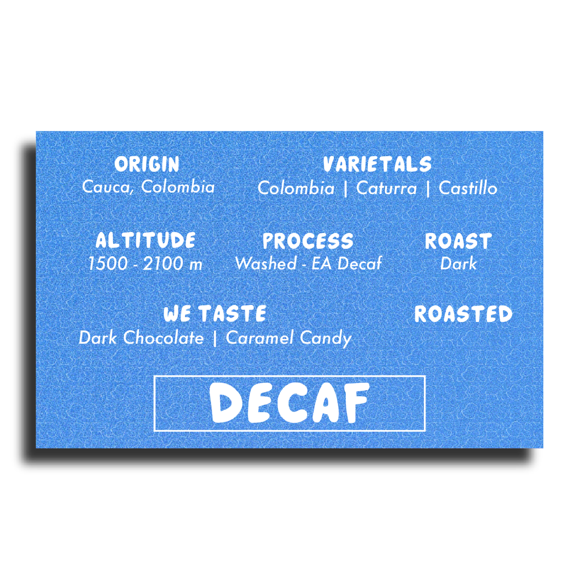 Sourced from the picturesque region of Cauca, Colombia, we taste hints of dark chocolate and caramel candy.